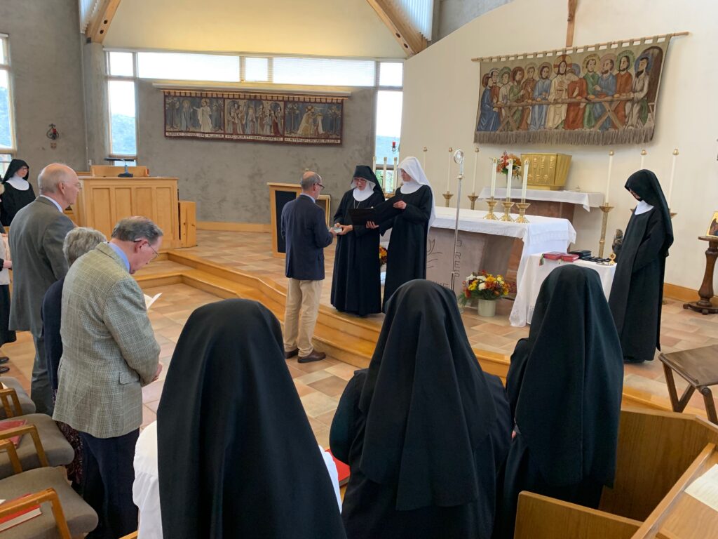 We’re happy to see our oblate novices as they make their transition into becoming oblates. It’s a gift, and we can count on this in so many ways. What I want to remind you of is, in the Rule of St. Benedict, we find stability, conversion of life, and obedience. This creates the boundaries of our lives — to keep us on the straight and narrow path to eternal life with God.